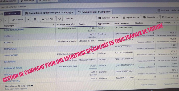 Cette offre prend en compte la création et la gestion de deux differentes campagnes, une pour la notorieté et l'autre pour l'acquisition de clients