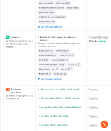 Mon audit sémantique garantit des recommandations sur tous les aspects liés au contenu présent sur la page que vous avez choisie pour l’audit éditorial.