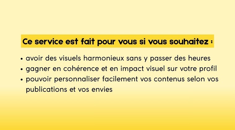 - gagner en cohérence et en impact visuel sur votre profil