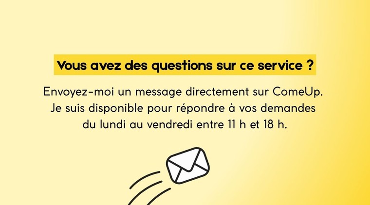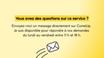 Je suis disponible par message du lundi au vendredi pour répondre à vos questions :)