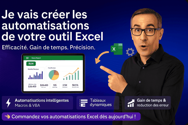* Automatiser les processus redondants et chronophages sur Microsoft Excel pour améliorer votre efficacité quotidienne, notamment dans les domaines financiers, administratifs et comptables.