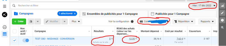 ✔️ Lecture des indicateurs clés : CPC, CPM, CTR, ROAS, conversions