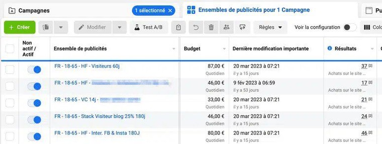 ✔️ Campagne optimisée avec jusqu'à 5 adsets testés