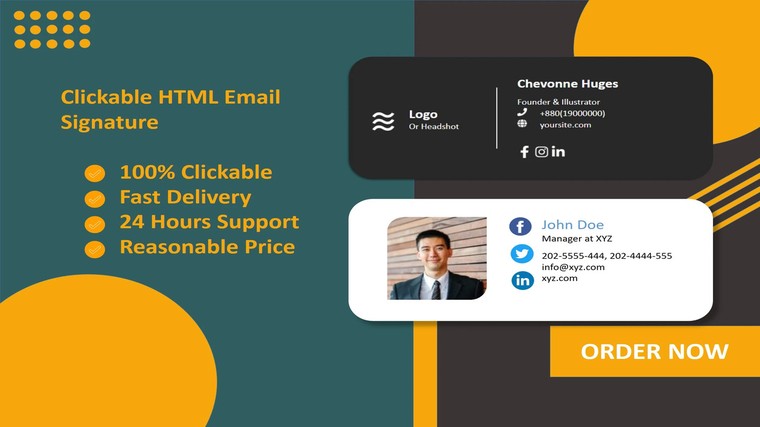 I specialize in designing professional, responsive, and fully clickable HTML email signatures that work flawlessly across Gmail, Outlook, Apple Mail, Yahoo, and all major email platforms.