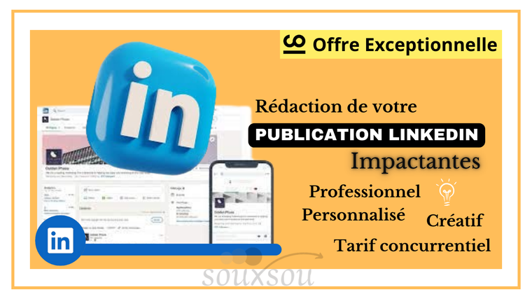 **Expertise en Rédaction LinkedIn :** Bénéficiez de l'expérience d'un rédacteur professionnel spécialisé dans la création de contenus adaptés à la plateforme LinkedIn.