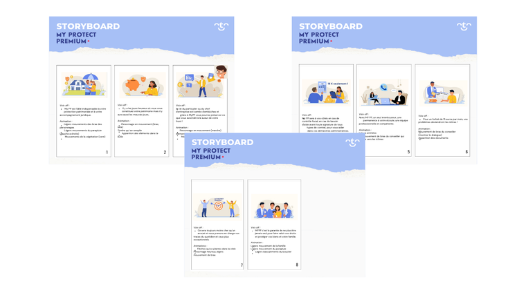 La prestation de base vous donne accès à la création d'un storyboard personnalisé avec description de la scène (4 frames). Chaque storyboard est livré en format PDF offrant une représentation visuelle de la séquence narrative de votre histoire.