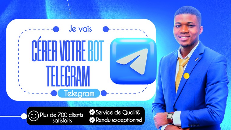 🤖Je vais créer pour vous un bot Telegram automatisé afin de simplifier et optimiser la vente de vos formations ou abonnements VIP. Mon objectif est de vous permettre de vendre en automatique, 24h/24, sans intervention manuelle, tout en offrant une expérience fluide et professionnelle à vos clients 🚀💰.