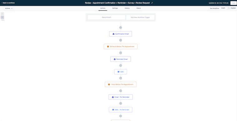 Ce sont des séquences d'actions automatisées déclenchées par des événements spécifiques, comme l'inscription d'un nouveau client ou la soumission d'un formulaire de contact. Ils permettent de rationaliser vos processus de vente et de marketing, vous libérant ainsi du temps pour vous concentrer sur le développement de votre entreprise. Imaginez un process de suivi évolutif dans lequel chaque tâche récurrente est automatisée et chaque client est suivi de manière personnalisée sans effort supplémentaire de votre part.