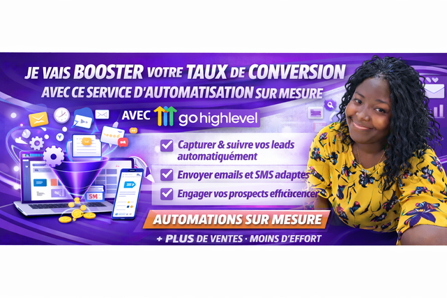 Je crée des flux de travail automatisés et sur mesure pour répondre aux besoins de votre agence. Par exemple, dès qu'un lead est acquis via Facebook ou votre landing page, il est crucial de le convertir rapidement en prospect puis en client. Grâce à mes workflows, chaque nouveau lead recevra automatiquement un message de bienvenue, des e-mails de suivi, des steps ou astuces gratuites pour le fidéliser, et d'autres communications bien ciblés pour le guider tout au long du processus de conversion. Vous n'aurez plus à vous soucier des tâches répétitives, car elles seront gérées de manière fluide et efficace grâce à ces automatisations que je mettrai en place.