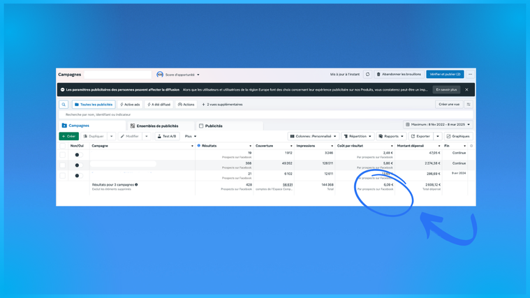 Si vous avez pris un suivi, nous optimisons la campagne ensemble