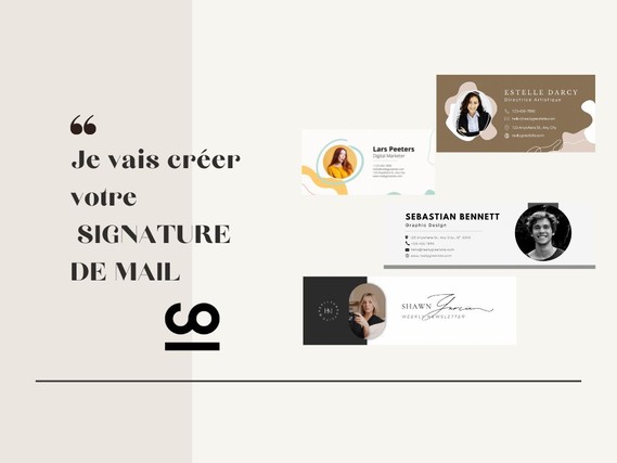 Pour 23,40 $US je vais créer votre signature de mail, sur-mesure, de qualité, avec des couleurs cohérentes, une typographie adaptée par rapport à votre identité.