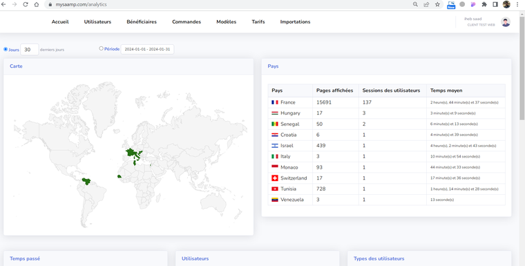 - Gestion* des utilisateurs avec deux types de rôles (Super Admin, simple utilisateur), Profil