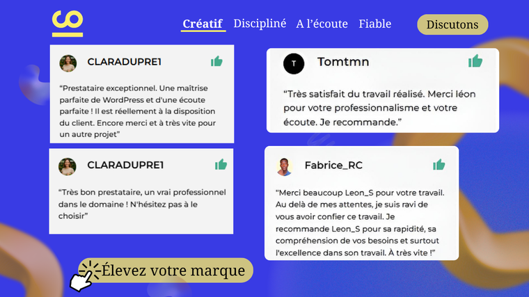 Proposé par Leon_S •Développeur WordPress | Sites modernes, structurés et optimisés pour convertir Ventes au total 9 Disponible sur ComeUp Direct