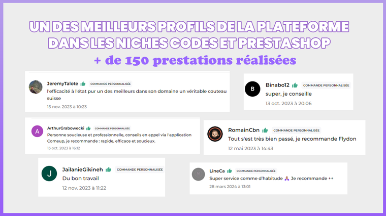 Bienvenu sur Flydon, l’un des meilleurs profils de la **plateforme dans les niches code et Prestashop**.