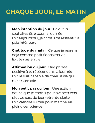 Un **rituel simple de 5 à 10 minutes par jour** pour apaiser ton mental et transformer ton regard sur la vie