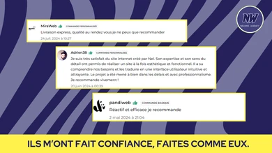 ☑️ +15 projets réalisés ☑️ +5 ans d'expérience 👋 Hello ! Je suis Nel. Vous avez besoin d'un site internet professionnel, optimisé et parfaitement adapté à vos attentes ? Vous êtes au bon endroit. 📈. Laissez moi transformer vos idées en réalité numérique🎉! Services proposés : 👉 Création et développement de sites web 👉 Optimisation SEO pour booster votre visibilité ➡️ Sur des plateformes telles que WordPress, Shopify, Wix, Systeme.io, et bien d’autres. 👨💻 Qui suis-je ? Je m’appelle Nel, Développeur Web passionné et Consultant SEO depuis 2019. Avec plus de 15 projets à mon actif, mon expertise repose sur une approche sur mesure, orientée résultats. J’ai accompagné des entrepreneurs, startups et grandes entreprises pour concevoir des solutions adaptées à leurs besoins en marketing digital et en développement web. ✨ Ma mission : vous fournir des solutions modernes, innovantes, et alignées avec vos objectifs et votre budget. 🔑 Pourquoi collaborer avec moi ? ✅ Expérience éprouvée : professionnel certifié et vérifié sur ComeUp ✅ Satisfaction garantie : ⭐⭐⭐⭐⭐ sur presque 100% de mes prestations ✅ Approche personnalisée : chaque projet reflète votre identité et vise à atteindre vos objectifs 🤝 Mon engagement : un accompagnement complet et une disponibilité constante pour répondre à vos besoins. 📩 Envie de donner un nouvel élan 🚀 à votre projet ? Contactez-moi dès aujourd’hui pour transformer vos idées en réalité. Je suis à votre écoute et ce sera un plaisir de collaborer avec vous. 🤝 À votre service, Nel