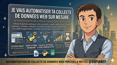 📊 Vous avez des données, mais peinez à en extraire la pleine valeur ? Vous souhaitez automatiser des tâches pour gagner en efficacité ? Bienvenue ! Je suis Sofiane, expert passionné par la transformation de données brutes en leviers de croissance et d'optimisation pour mes clients. Ma mission est de vous fournir des solutions data et d'automatisation claires, précises et directement actionnables. ⦿ Mes Domaines d'Expertise Principaux : ✨ Analyse & Visualisation de Données : Maîtrise de Power BI pour créer des tableaux de bord interactifs et percutants qui rendent vos chiffres compréhensibles et vous aident à piloter votre activité. Analyse approfondie avec Python (Pandas, NumPy) et SQL pour nettoyer, manipuler et explorer vos données, même volumineuses (Pyspark). 🤖 Intelligence Artificielle & Machine Learning : Compétences en Machine Learning avec Pytorch pour développer des modèles prédictifs ou d'analyse avancée (classification, etc.) adaptés à vos problématiques spécifiques. ⚙️ Automatisation & Collecte de Données : Web Scraping ciblé pour collecter les informations publiques dont vous avez besoin pour votre veille ou votre prospection. Développement de scripts Python pour automatiser vos tâches répétitives et optimiser vos workflows. ⦿ Ma Boîte à Outils : Python (Pandas, NumPy, Scikit-learn, Pytorch...), SQL, Power BI, Pyspark, et les techniques de web scraping. Pourquoi me choisir ? Approche Rigoureuse : J'aborde chaque projet avec méthode et précision pour garantir la fiabilité des résultats. **Focalisé sur Vos Objectifs : **Je cherche avant tout à comprendre votre besoin pour proposer la solution la plus pertinente et efficace. Communication Claire : Je m'efforce de vous expliquer les résultats et les processus de manière simple et compréhensible. Ayant également des compétences en conception de schémas électroniques (Eagle, EPLAN) et en modélisation 3D (Blender, Unreal Engine), je peux potentiellement apporter une perspective plus large sur certains projets techniques. 🚀 Prêt(e) à faire parler vos données ou à automatiser vos processus ? Discutons de votre projet ! Contactez-moi pour voir comment mon expertise peut contribuer concrètement à votre succès.