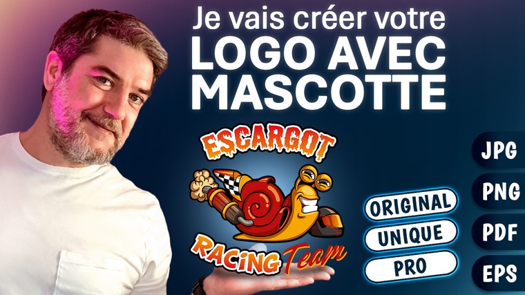 ● Fichiers livrés (logo et mascotte seule) : JPG / PNG sans fond (300dpi, 1000x1000 pixels) / PDF vectorisé / EPS vectorisé
