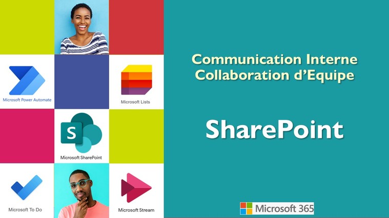 - l'un de vos sites de communication SharePoint, avec les permissions appropriées, une mise en page simple de la page d'accueil avec vos titres, sous-titres et les images spécifiques que vous m'aurez fournies, ainsi que les différentes rubriques nécessaires (l'organisation de vos documents en dossiers, la partie vidéo, des liens vers les composants de votre intranet ou vers des sites internet).