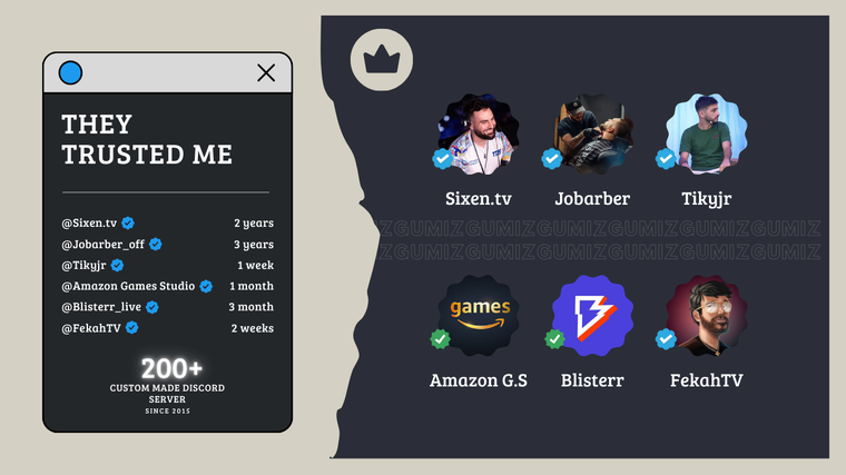 **200 Discord** à mon actif **depuis 2015** et des clients de renoms.
