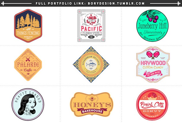 All portfolio samples are 100% original and handcrafted retro logo designs made for previous clients.