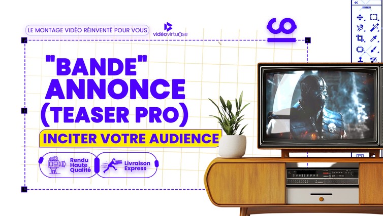 Vous cherchez à capter l'attention de votre audience avec une bande d'annonce percutante et mémorable ? Notre service de création de bande d'annonce unique est conçu pour vous aider à promouvoir efficacement vos produits, événements, ou services. Nous mettons à votre disposition notre expertise en montage vidéo pour créer une bande d'annonce qui résonne avec votre public.