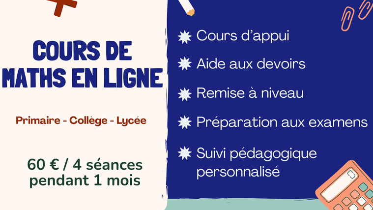 Que vous soyez un élève cherchant à améliorer vos notes ou un parent souhaitant offrir à votre enfant le meilleur soutien scolaire possible , mes cours de maths sont faits pour vous !