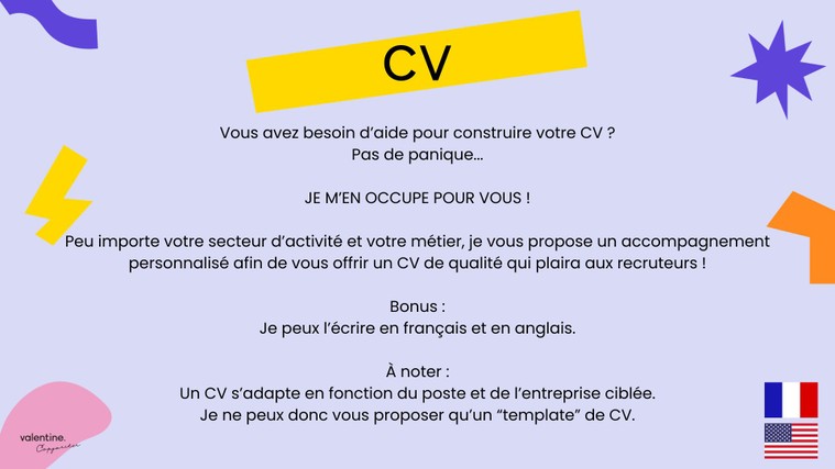 - La traduction de votre CV vers l'anglais US (en supplément).