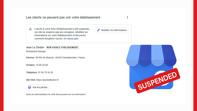 - Violation des lignes directrices de Google : Google a des règles strictes concernant la gestion des fiches d'entreprises. Toute violation, même mineure, peut entraîner une suspension.