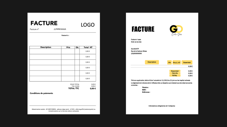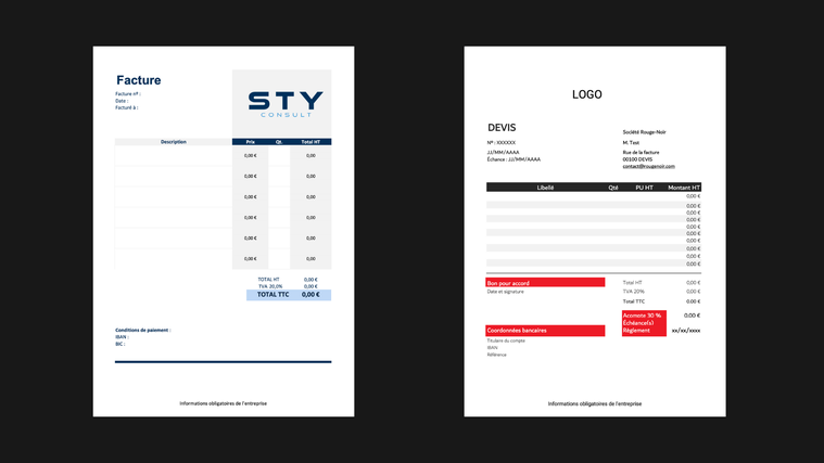 Votre identité visuelle est essentielle pour vous démarquer et être rapidement reconnu par vos clients actuels et futurs. Chaque détail compte, y compris vos documents officiels tels que devis et factures, qui doivent respecter les mentions obligatoires tout en reflétant l'image de votre entreprise.