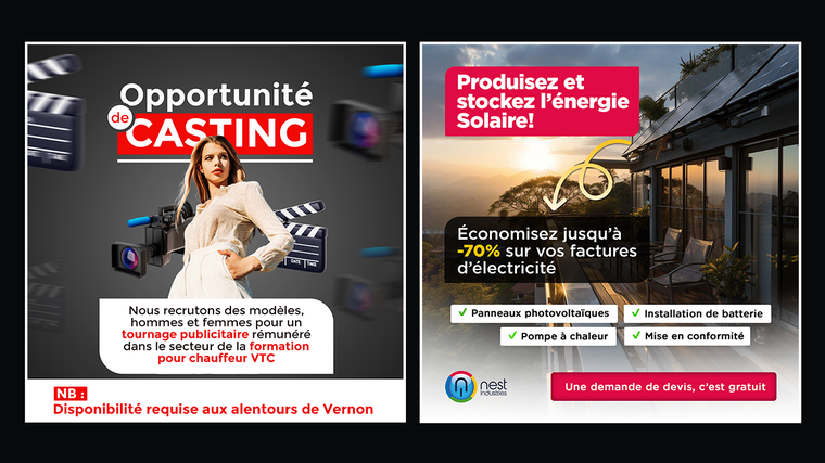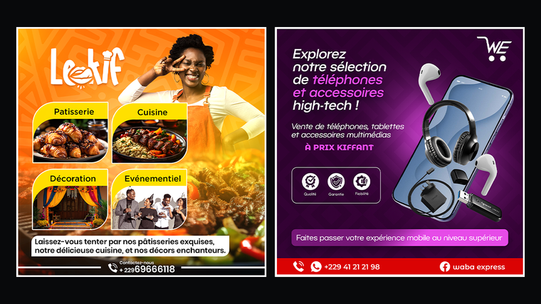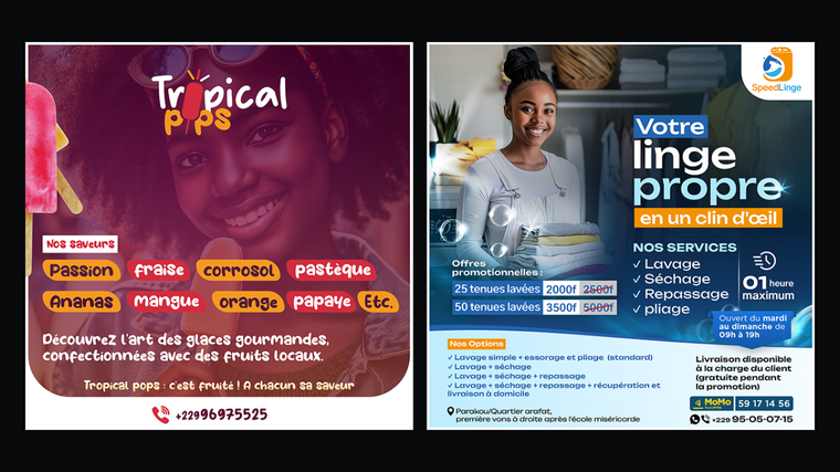 Idéal pour promouvoir votre entreprise, ses produits et services. Qu'il s'agisse d'une opération promotionnelle, de notoriété, de lancement de produit ou pour toute autre opération spéciale, je m'occupe de votre campagne de pub de A à Z.
