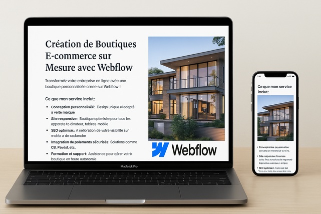 Vous avez besoin d’un site vitrine moderne, clair et facile à gérer ? Je vous propose la création de votre site avec Webflow, une plateforme rapide, flexible et sécurisée, sans code à maintenir.