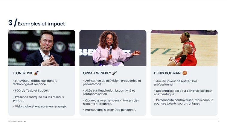 Utiliser des modèles de présentation standard ou des solutions automatisées peut aboutir à des présentations fades et peu percutantes, qui ne transmettent pas fidèlement votre message ni l'essence de votre projet.