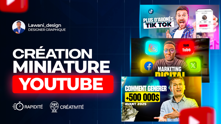 **Attirez l’attention de votre audience** : Des miniatures captivantes augmentent le taux de clics (CTR) en attirant immédiatement l'intérêt des internautes. Dans un environnement numérique saturé, chaque détail compte pour se démarquer. Ne laissez pas vos vidéos passer inaperçues ; investissez dans un design accrocheur pour booster vos vues.