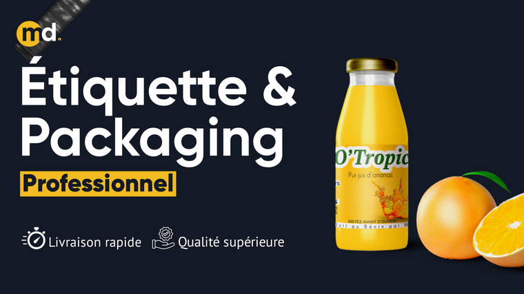 Une **étiquette et packaging** ou **emballage** professionnel crée une première impression favorable auprès des consommateurs et peut inciter les clients potentiels à choisir votre produit parmi les nombreux autres disponibles sur les étagères ou en ligne.