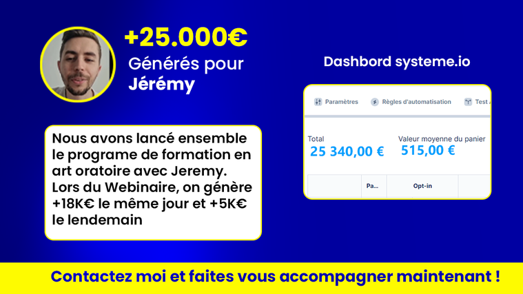 Les plus grands coachs et infopreneurs utilisent cette méthode pour automatiser leurs ventes et générer des revenus en continu. Et bonne nouvelle : vous pouvez faire pareil. Car, elle a été testée avec des centaines d'entrepreneurs comme vous, et les résultats ont toujours été fulgurants.