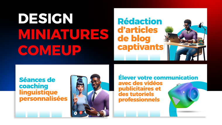 ➤ Optez pour des miniatures professionnelles qui feront toute la différence. Ces visuels attirent instantanément l’œil, mettent en valeur votre savoir-faire et incitent les clients à cliquer. Ne laissez plus vos services passer inaperçus : démarquez-vous avec des créations percutantes.