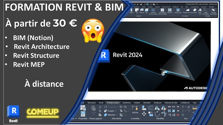 Contenu évolutif : Après cette première session, vous pourrez continuer avec des modules avancés sur Revit Architecture, Structure et MEP (électricité, plomberie, etc.).