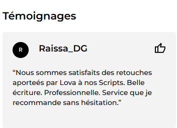 Je travaille sur tous types de textes : mémoires, essais, romans, manuscrits, scripts vidéo, et bien plus encore. Peu importe le style ou le sujet, je m’adapte à votre ton pour vous offrir un résultat impeccable et sans fautes.