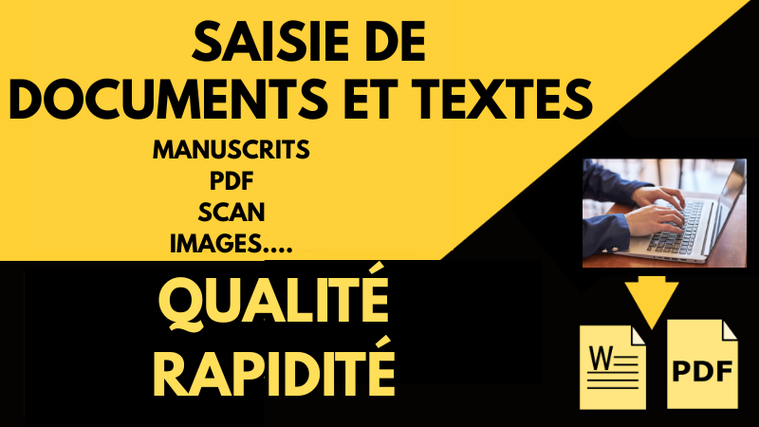 Pour 17,61 $US, je vais saisir et corriger si nécessaire sur Word à partir de 1 à 2000 mots soit 5 pages. Je vous rendrai le document en versions Word ou PDF. Vous pouvez choisir une livraison à courte durée si votre besoin est urgent et une fois votre commande traitée, vos fichiers seront supprimés de mon ordinateur, afin d'assurer la sécurité de vos informations.