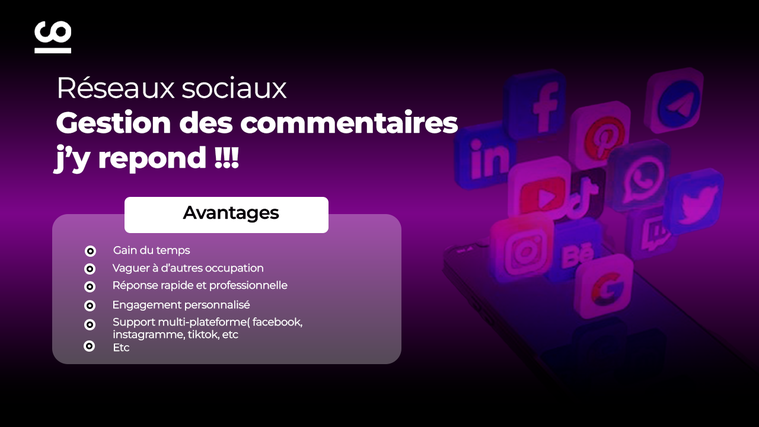 Ce service vous offrira l'opportunité de libérer du temps et de vous recentrer sur les aspects essentiels de votre activité. Je mets à votre disposition une gestion complète de vos interactions sur les réseaux sociaux, tels que Facebook, Instagram, TikTok, Snapchat, LinkedIn, etc. De plus, lors de vos campagnes de promotion, je prends en charge l'intégralité de vos messages pendant la période d'activité, vous permettant ainsi de vous concentrer pleinement sur la gestion de vos ventes et commandes.
