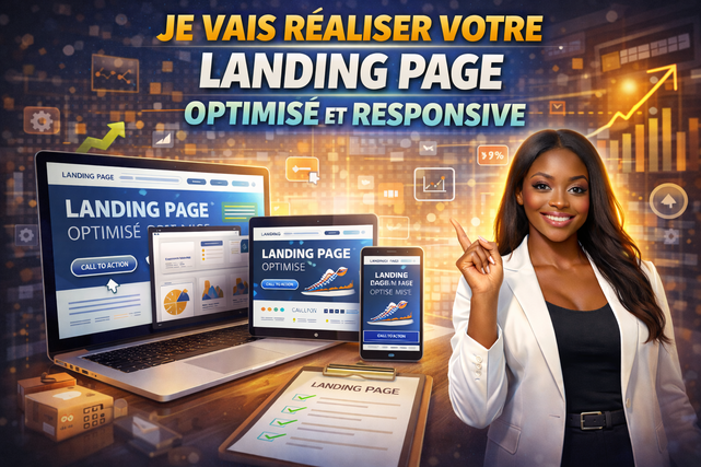 Vous souhaitez convertir vos visiteurs en clients ? Je vous propose de créer une landing page (page d'atterrissage) optimisée, conçue pour maximiser vos conversions. Que ce soit pour promouvoir un produit, un service, ou pour capturer des leads, je m'assure que chaque élément de votre page soit en harmonie avec vos objectifs commerciaux.