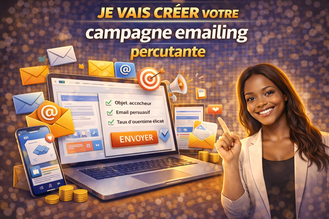 Je vous propose de créer pour vous une campagne emailing percutante et sur-mesure, en mettant en avant vos produits, offres ou services de manière optimale.