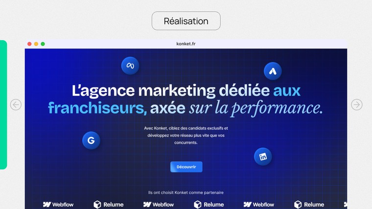 **Intégration et développement **: utilisation de Webflow pour un site performant et réactif.