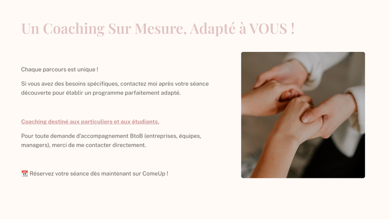 Coaching destiné aux particuliers et aux étudiants.