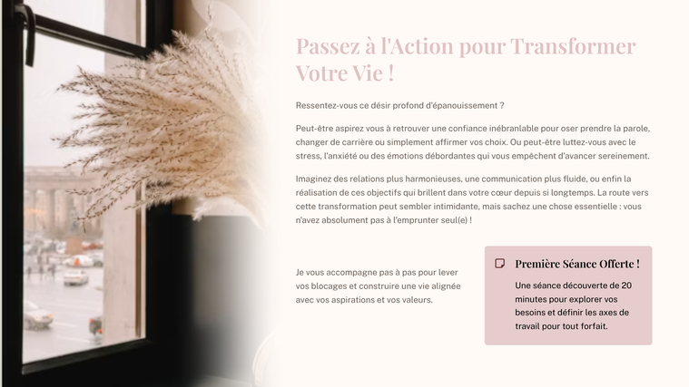 Vous aspirez à plus de confiance, une meilleure gestion de vos émotions, des relations épanouies ou encore à atteindre des objectifs qui vous tiennent à cœur ? Vous n'avez pas à avancer seul(e) !