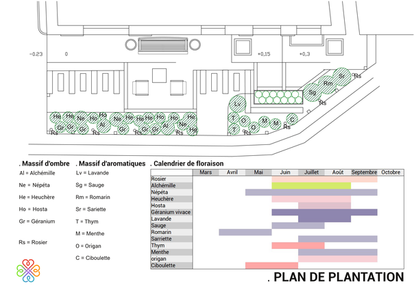 • Un plan de plantation simplifié, indiquant où seront placées les végétaux dans l’espace