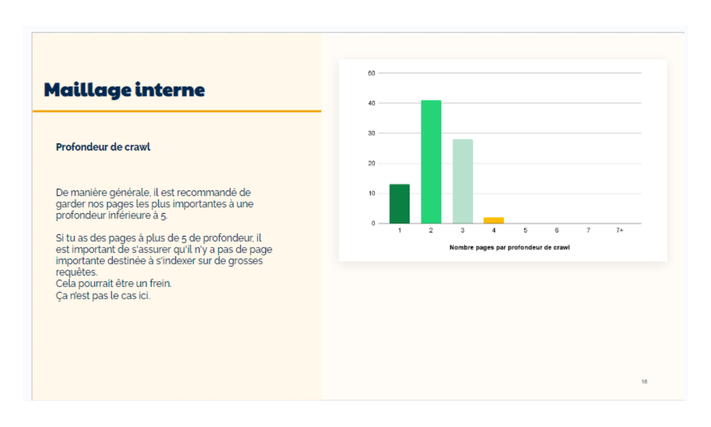 Cet audit repose sur l'analyse des critères suivants : codes de réponse, erreurs internes, balises (titres, description, H1), indexabilité des pages du sitemap, nombre de mots, temps de réponse, profondeur crawl page, robot.txt, performance pagespeed, format des images, maillage interne...