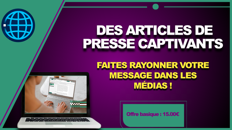 Un Style Éprouvé : Ma plume captivante et professionnelle garantit des articles de presse qui retiennent l'attention et suscitent l'intérêt.