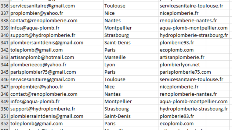 Format de livraison : fichier CSV ou Excel, prêt à être importé dans vos outils d'email marketing.